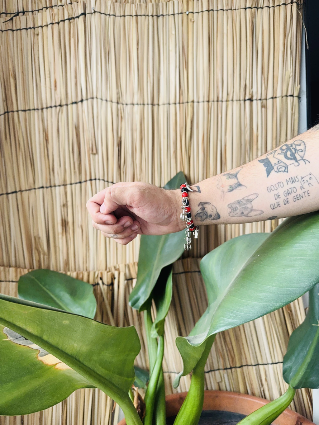 A Pulseira Exu é um amuleto de força, proteção e abertura de caminhos. Inspirada na energia de Exu, mensageiro sagrado que rege as encruzilhadas e a comunicação com o espiritual, esta peça conecta quem a usa com a vitalidade, coragem e proteção do orixá.